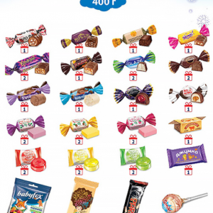 Новогодний набор из глазированных и неглазированных конфет, карамели, жевательного ...